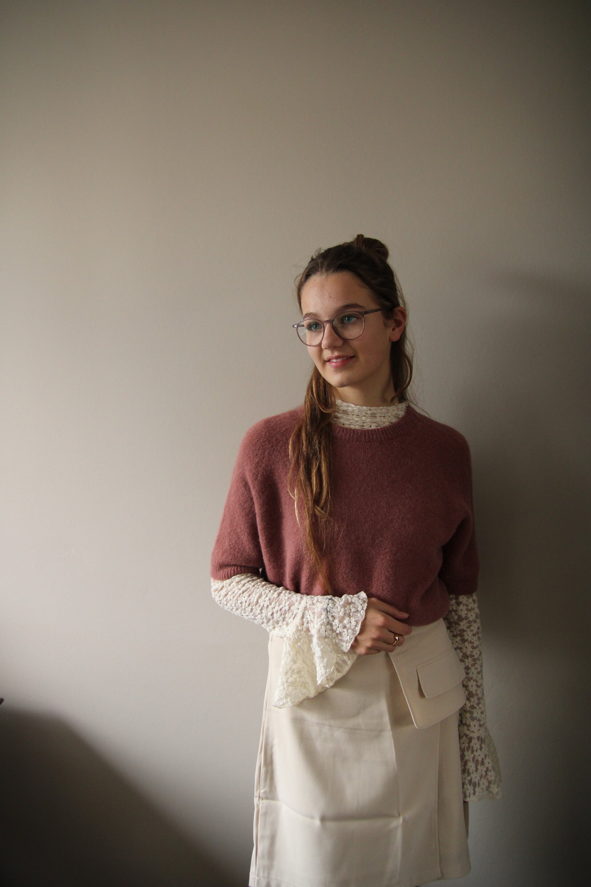 het model is 1,75m en het truitje is one size